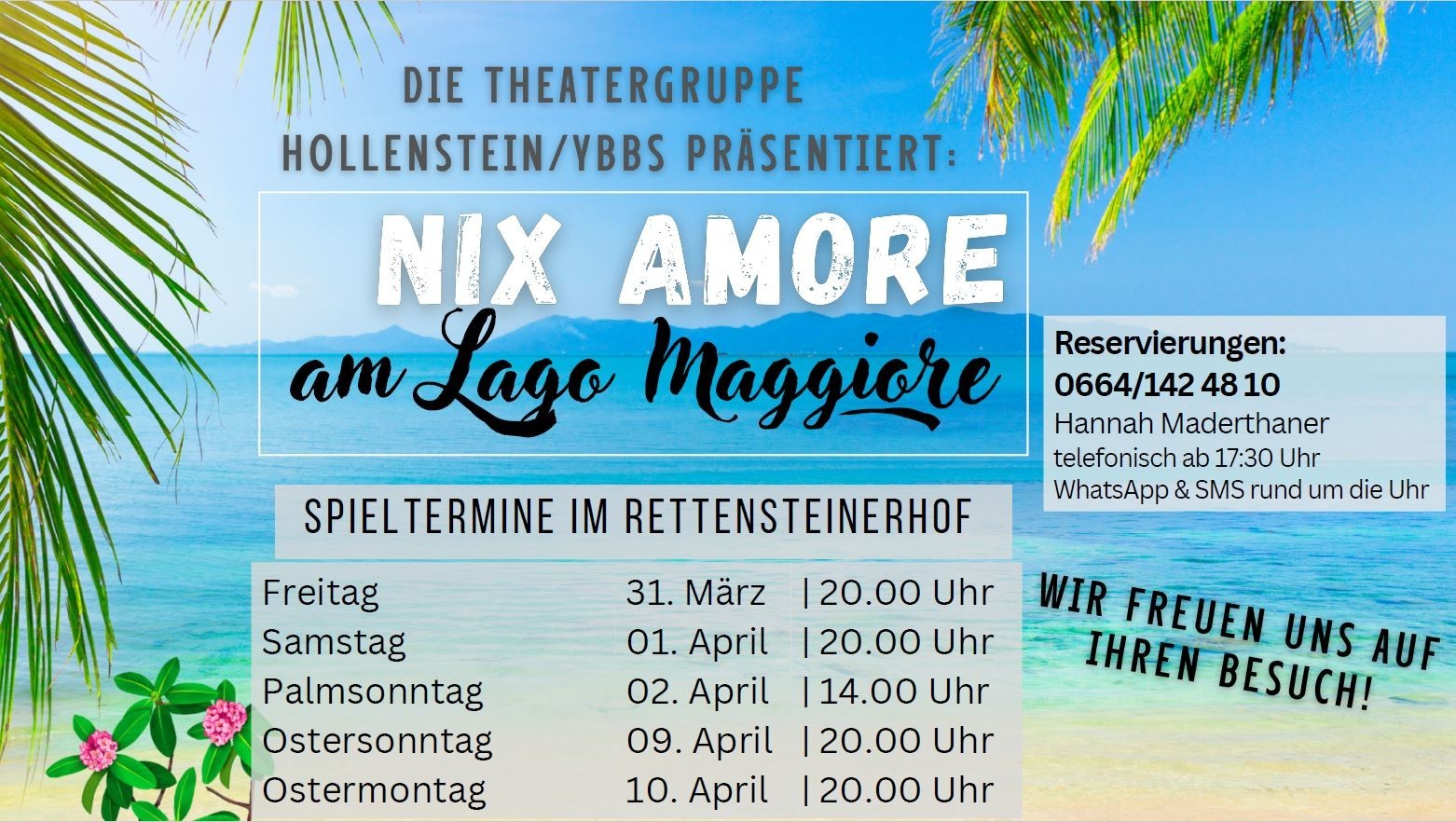 Die Theatergruppe Hollenstein/Ybbs lädt recht herzlich zum Stück „Nix Amore am Lago Maggiore“ ins GH Rettensteiner ein.